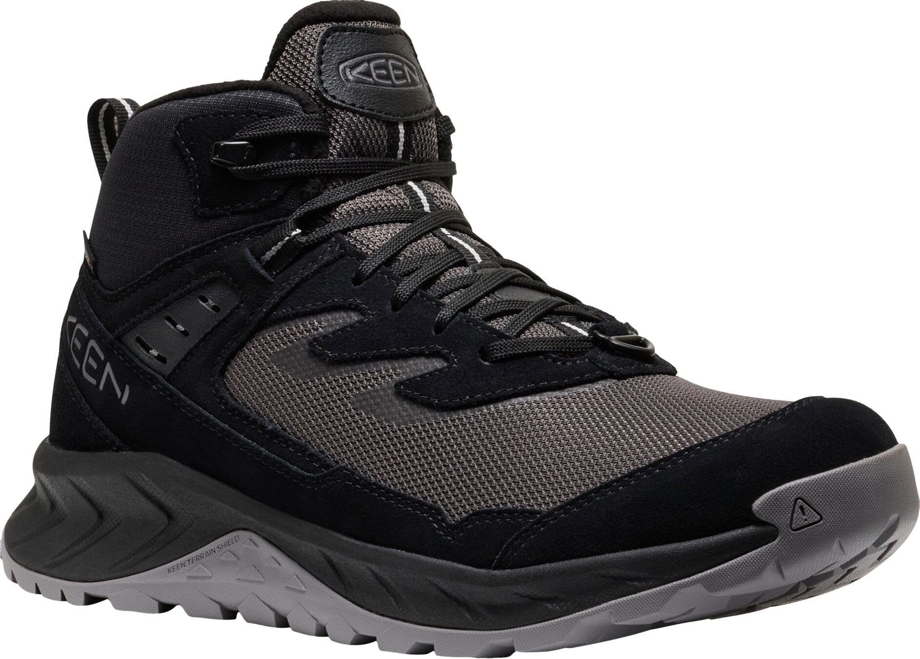 V teple a suchu za každou cenu: Užijte si zimní výšlapy na maximum díky technologii KEEN.WARM s 200g izolací, která vás udrží v teple až do -32 °C. O vyšší tepelný komfort se postará také stélka Thermal Heat Shield a fleecová podšívka. Prodyšná voděodolná membrána KEEN.DRY uvolňuje vlhkost zevnitř, ale nepropustí vodu zvenku.
