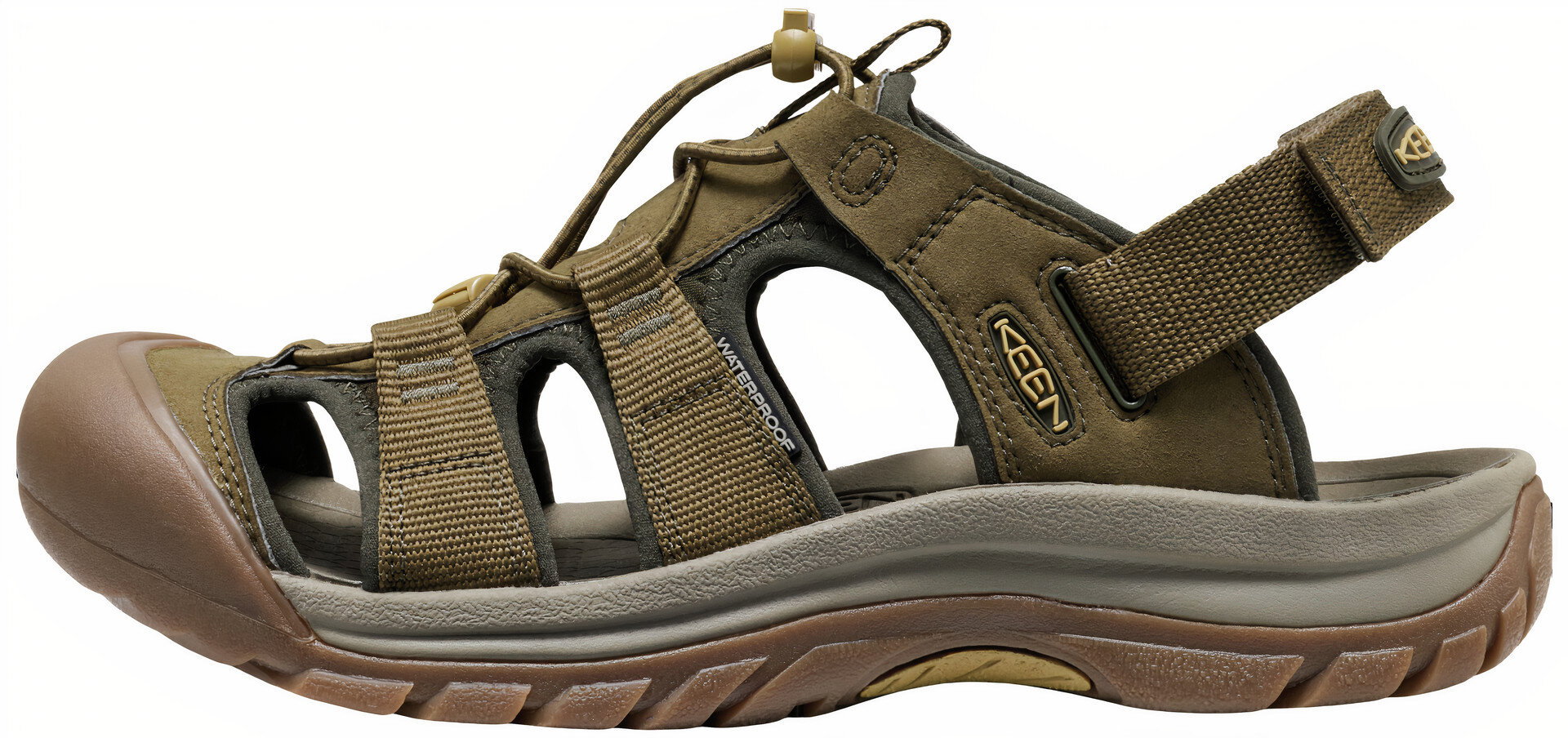 Rychleschnoucí páskový svršek s výbornou ventilací. Možnost nošení i jako pantofle po odepnutí patního pásku. Anatomická EVA stélka s podporou klenby. Ochrana prstů KEEN.PROTECT a přilnavá gumová podrážka.
